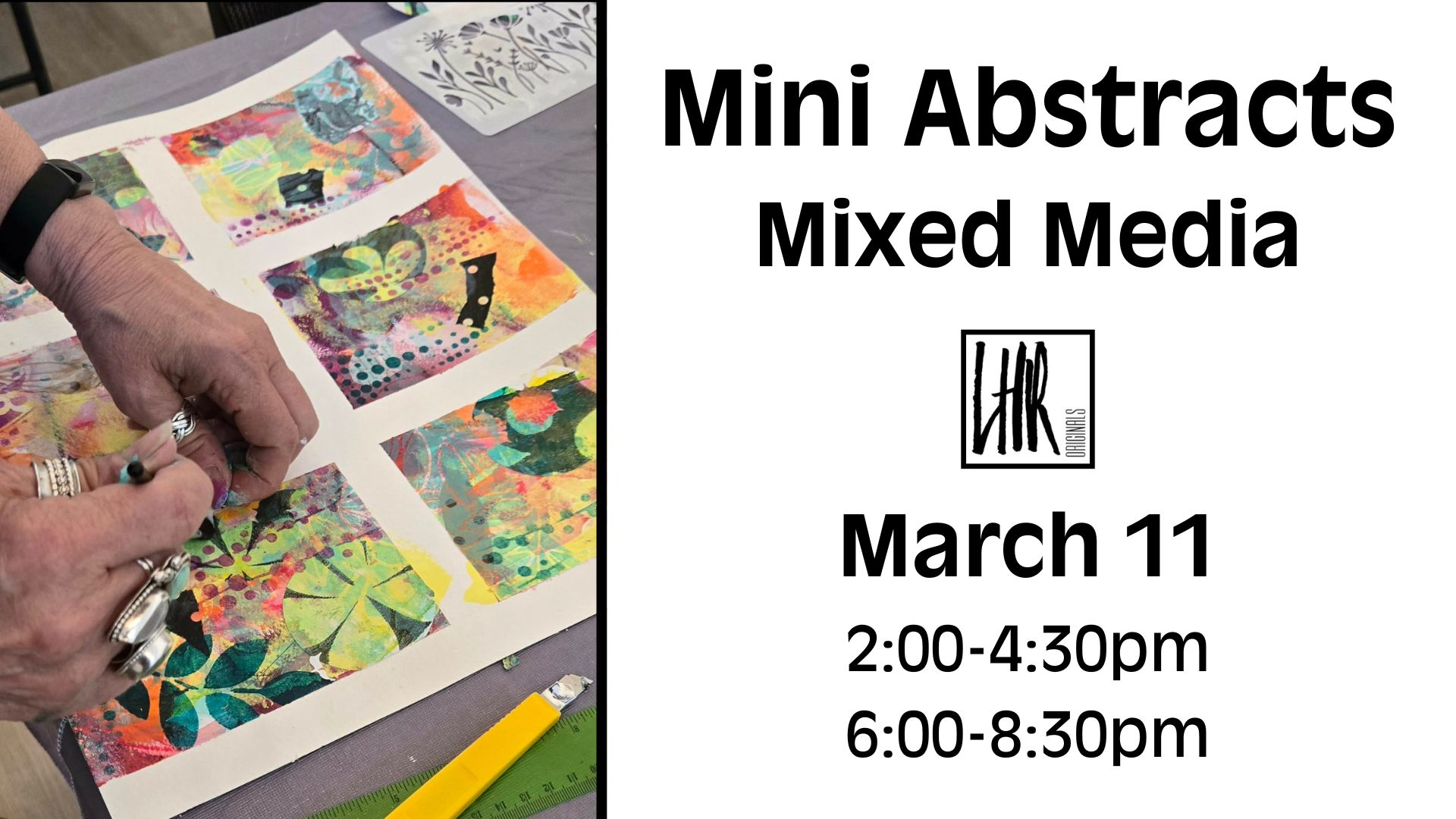 Unleash your creativity in the Mini Abstracts class! Over 2.5 hours, you'll craft 8 unique mini artworks using an array of techniques and mediums. Elevate your favorite piece with a mat, ready for framing. Join us for a fun and inspiring artistic journey! All materials are provided. Class is held at Artful3 Studio 2-1156 Wyandotte …